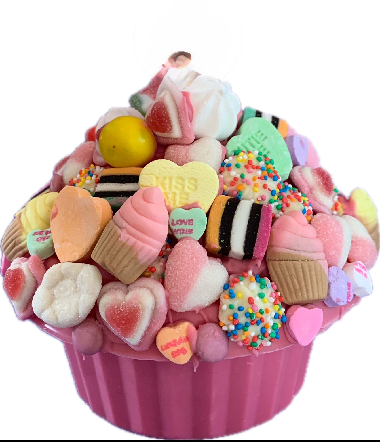 Get ready for an unforgettable experience with your Giant Cupcake Smashcake, which comes with a wooden mallet and a secret pinata mix filled with Allans party mix and Cadbury Fresha lollies. At first glance, it looks like a regular cake, but once you smash it open, a delightful explosion of sweets awaits!